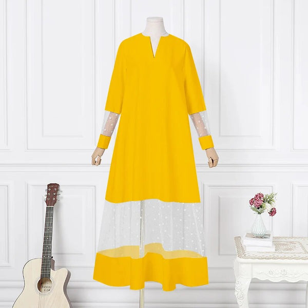 Look stylish and fashion-forward in this Hold Up Dress. With an elegant v-neck, long sleeves, and a bohemian patchwork of lace and flower-shaped polka dots, this dress is perfect for special occasions. The pleated fabric provides a flattering silhouette and timeless charm.