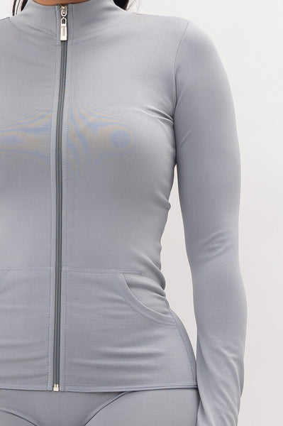 Seamless Full Zip Up Jacket And Leggings, pockets in front and thumbholes, extra comfy with lots of stretch!